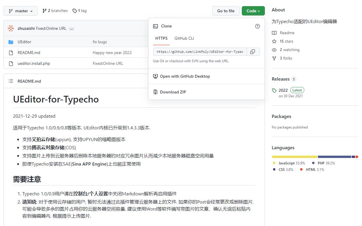 LinkPoly/UEditor-for-Typecho: 为Typecho适配的UEditor编辑器